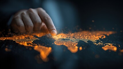Dark world map with digital interface elements