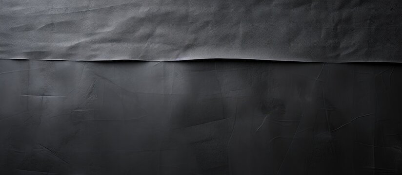 Black creased piece of matte cloth adheisive gaffer tape on grey cardboard background Copy space for text