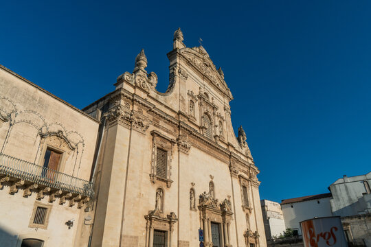 Galatina, Lecce, Apulia, Italy - August 19, 2021: Facade of the Church of the Saints Peter and Paul the Apostles