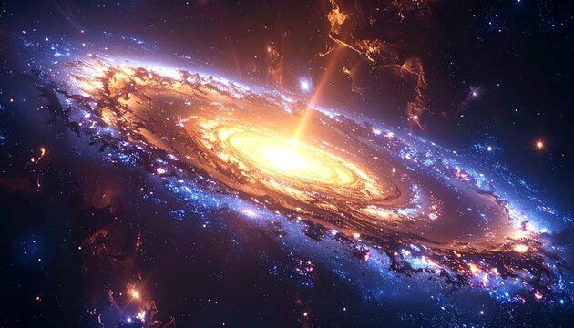 Dazzling spiral galaxy with luminous star and cosmic dust clouds