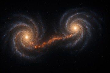Two Spiral Galaxies Interacting in Deep Space.