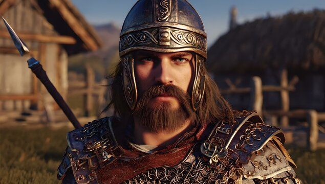 Portrait of a man dressed like Vercingetorix the historic gallic king who united Gauls in ancient France