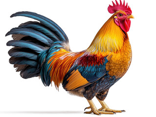 A high-resolution studio photograph full body shot of a Gallic Rooster animal symbol of France on a pure white background, perfect for dicut.