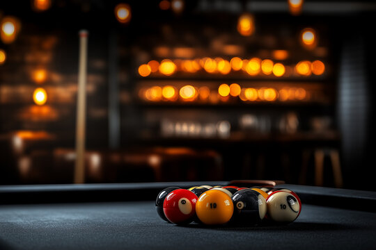 Game balls on billiard table close up background...