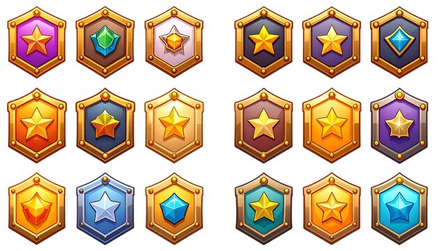 Colorful game shields with stars and gems