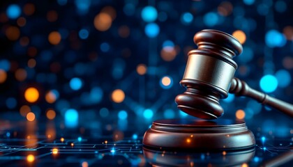 AI law and ethics and legal concepts artificial intelligence law and online technology of legal regulations Controlling artificial intelligence technology is a risk. Judicial gavel and law icon