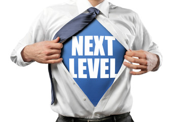 Posing female athlete holding ball with neon level completed text on vibrant yellow background