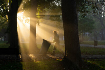 collecting trash