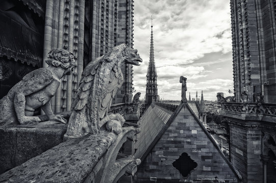 Gargoyles of Notre Dame cathedral in Paris, France