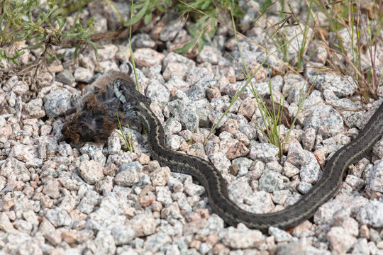 A Wandering Garter Snake (Thamnophis elegans vagrens) Moving Through Dense Vegetation in the Mountains of Colorado
