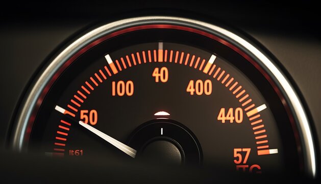 Digital temperature gauge showing high heat level with needle in red zone on dark background, performance indicator concept