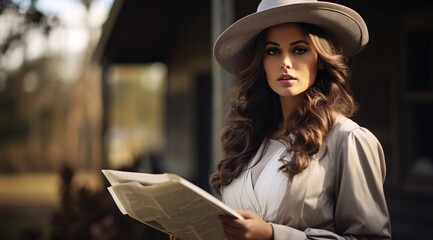 Vintage Gazette: Hat-Wearing Woman and Her News