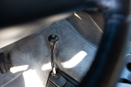 Manual transmission. Interior features of the car. Car's gearbox. Subtle lighting. Abstract viewpoint