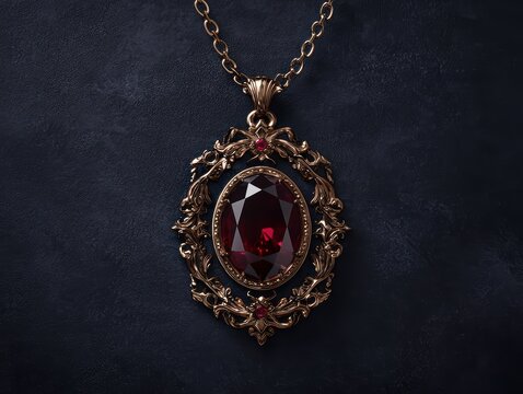 Ornate antique-inspired silver filigree lozenge pendant with gem accents on neutral gray