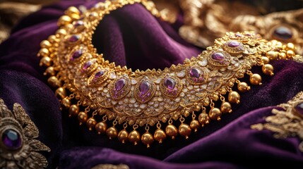 Gleaming jewel-encrusted ornate double doors with gold filigree and faceted gemstones