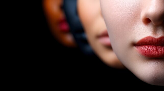 Gender fluid person applying lipstick calmly