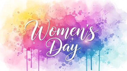 Celebrating Women's Day with colorful watercolor background and elegant white script text highlighting the importance of women's achievements and empowerment in a vibrant festive design