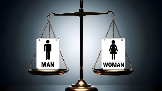 Balanced scales of justice for men's and women's restrooms