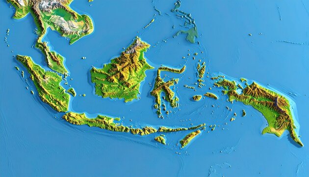 Southeast Asia Topographic Map,  Indonesia and Malaysia Relief Map with Elevation Shading