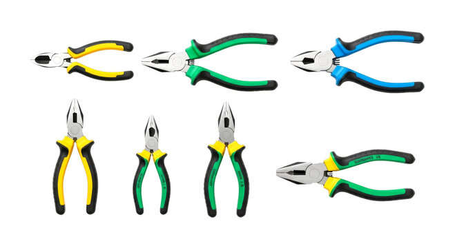 Various types of pliers are essential tools for gripping, cutting, and bending wires, commonly used in electrical work and general repairs.