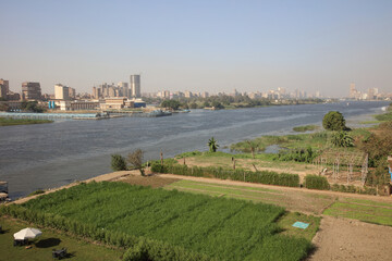 Scenic rice field with traditional farmhouses in tranquil countryside