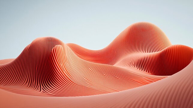 Abstract Coral Orange 3D Wave Landscape, AI Generated