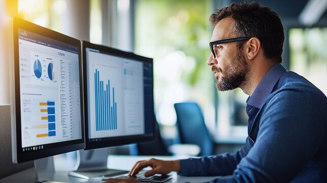 Stressed businessman managing financial data at office desk