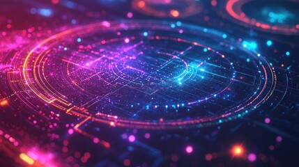 Neon infinity with digital stock market graphics