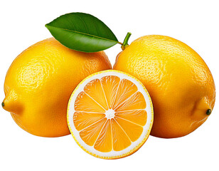 Ai generated image of two lemons and a slice isolated on transparent background png