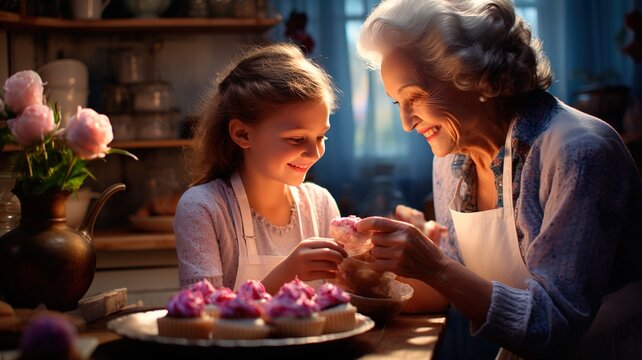 Grandmother and Granddaughter Enjoying Baking Together