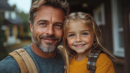 Father and daughter sharing meaningful moment on front porch steps