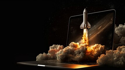 A futuristic digital laptop. A representation of the digital era and the power of technology.  ..Created with Generative AI, not depicting real subjects.