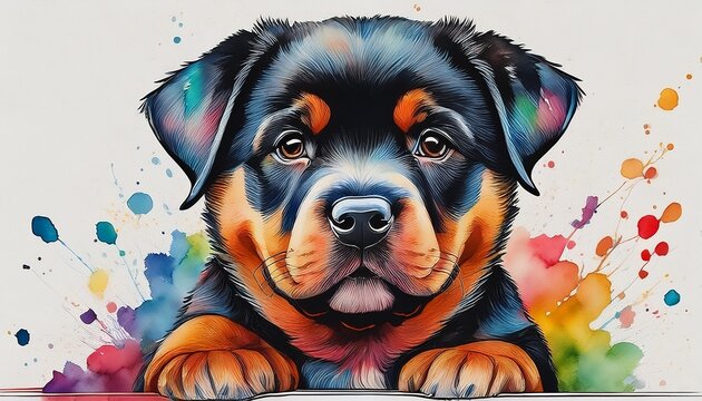 watercolor borders of a colorful rottweiler puppy generative ai art