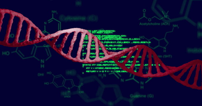 Image of chemical structures and data processing over dna strand spinning