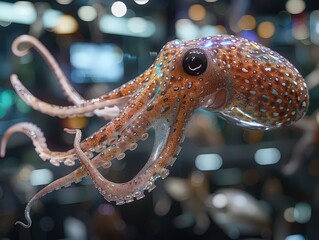 virtual lab interface where researchers use AI tools to study squids, including 3D models, behavioral simulations, and genetic analysis.
