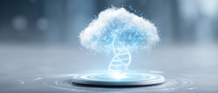 Holographic Medical Interface with Pills and DNA. Ai generation