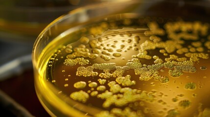 Closeup of petri dish with genetically engineered microorganisms in a stateoftheart biotech lab