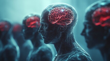 Neural Connections and Human Cognition Represented Through Glowing Brains in an Abstract Digital Landscape