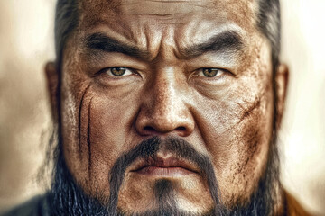 Portrait of asian ancient emperor Genghis Khan (AI generated).