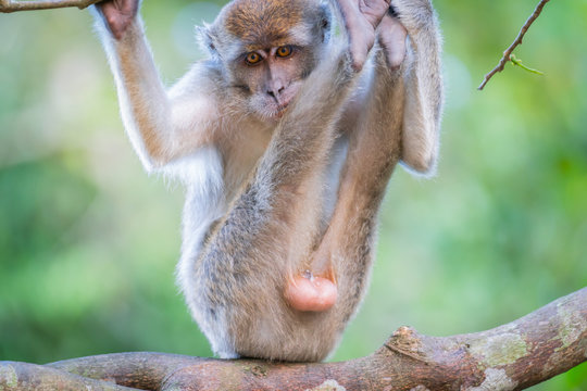 Monkey in a tree showing off.