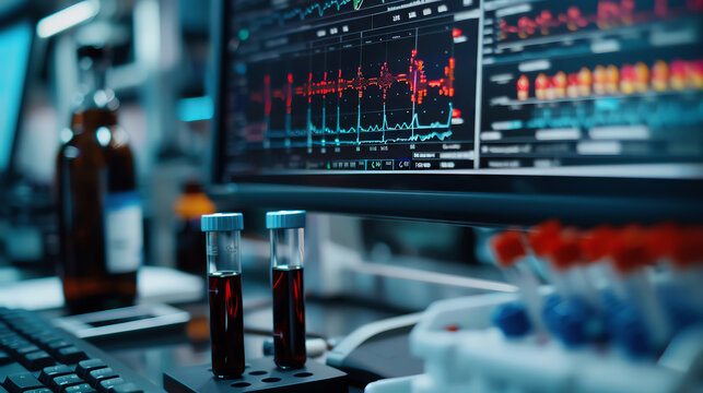 Cutting Edge DNA Research Powering Medical Science Breakthroughs in Genetics and Biotechnology  Laboratory experiment with test tubes liquid samples