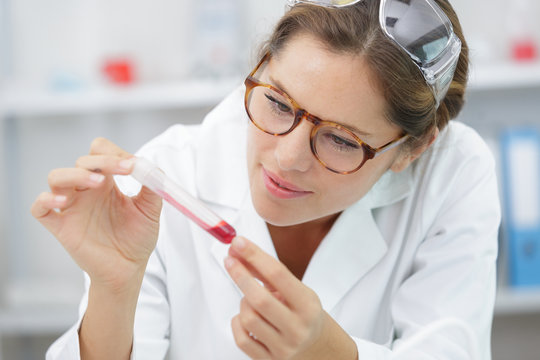 Scientist examines dna strand with vial