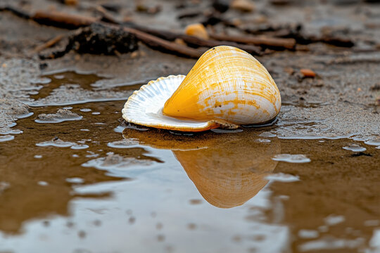 Geoduck shell closeup coastal shore macro photography natural environment detailed view marine life exploration