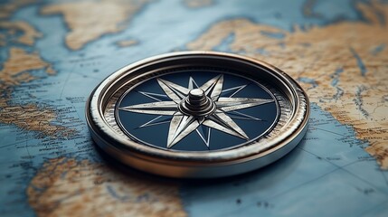 A minimalist rendering of a white map pin on a dark blue surface with light streaks and geometric shapes, suggesting location technology, geographic navigation, and digital cartography.