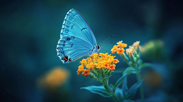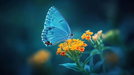 Blue butterfly on flower, lantana flower, macro photography, National Geographic photo