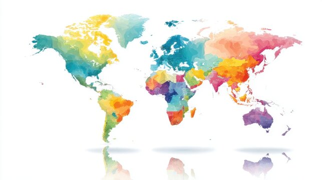 Colorful World Map Illustration with Vibrant Watercolor Style for Educational and Geographical Content