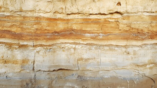 A sedimentary rock formation shows distinct layers of earth tones created by geological stratification process.