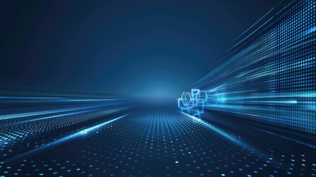 Modern abstract blue background with glowing geometric lines. Blue gradient hexagon shape design. Futuristic technology concept.