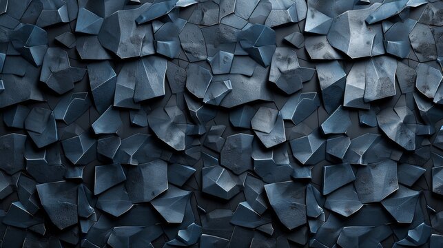 This image presents dark fragmented geometric forms arranged in an abstract pattern, showcasing a modern and edgy artistic style with a hint of complexity.