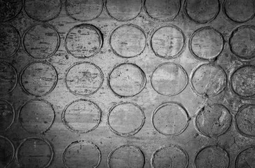 Geometric gray concrete tile with eco-parking cells With a hole for grass. Top view, paving stones for grass, block tiles made of concrete in the form of connected circles